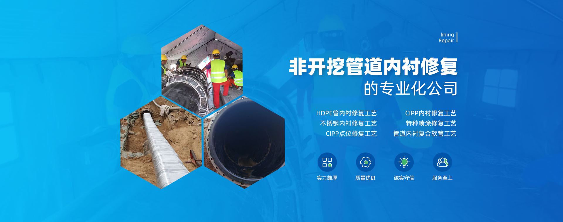 以安全、質量為第一,通過非開挖修復工藝延長管道使用壽命,讓舊管道再煥新生,為客戶提供優質地下管網解決方案。